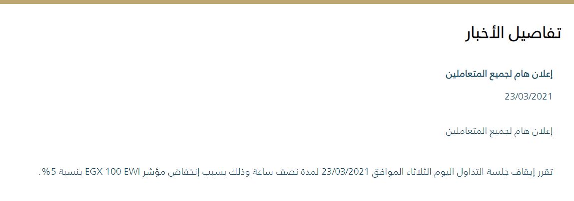 أغلق مؤشر EGX30 على تراجع جديد بنسبة 0.6% مقللا بعض خسائره خلال الجلسة، والتي شهدت إيقاف التداوللمدة نصف ساعة بعد هبوط مؤشر EGX100 EWI بنسبة 5%. وبلغ إجمالي قيم التداول خلال الجلسة 1.1 مليار جنيه (32.1% فوق المتوسط على مدى الـ 90 يوما الماضية)، مرتفعا عن تداولات أمس التي بلغت 940 مليون جنيه. وجاء المستثمرون المصريون وحدهم كصافي مشترين بختام الجلسة، بعد أن تأثروا في بدايتها بنداءات هامش مكثفة.