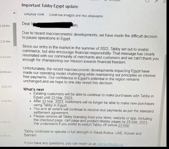 The rationale? A tough economy: “Recent macroeconomic developments have made our operating model challenging while maintaining our principles of interest-free payments,” the leaked email read. The fallout from the war in Ukraine and rising interest rates has tipped the Egyptian economy into crisis over the past year, causing the EGP to lose almost half its value against the greenback and sending inflation to its highest rate in five years. “We must prioritize projects that align with our long-term goals in core markets, and as a result, we have decided to pause our commercial operations in the Egyptian market,” Tabby said in an emailed statement.