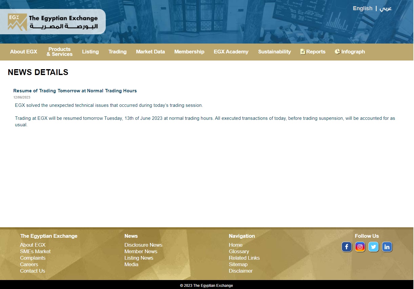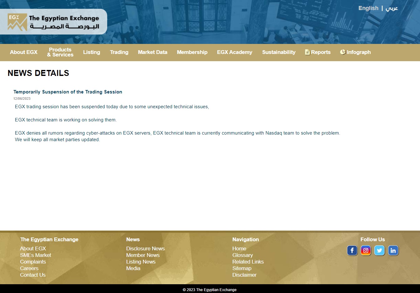AND- The EGX is back: Trading on the EGX will resume today after a technical glitch caused the system to go down yesterday afternoon, the bourse said in a bulletin. The bourse yesterday denied rumors that the disruption was caused by a cyberattack and said it was working with Nasdaq to resolve the issue. Enterprise was unable to reach an EGX representative for comment yesterday.