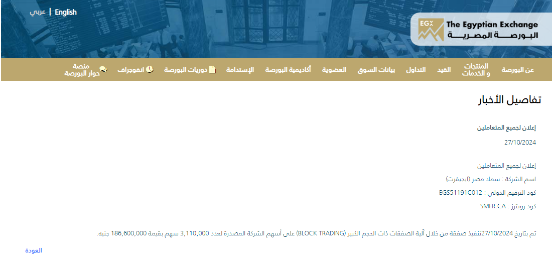 #3- EgyFert saw a large-volume trade of 3.11 mn shares worth EGP 186.6 mn on the EGX yesterday.