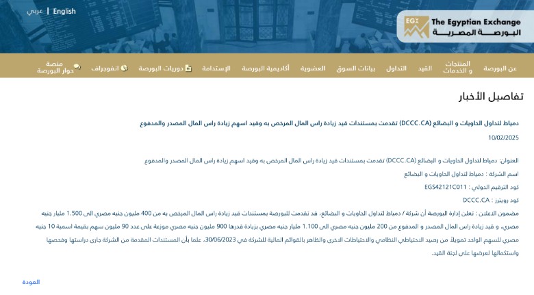 EGX-listed Damietta Container and Cargo Handling Company wants to raise its authorized capital to EGP 1.5 bn, up from EGP 400 mn, and increase its issued and paid-up capital to EGP 1.1 bn, up from EGP 200 mn, according to an EGX bulletin. It’s worth noting that while the company has been listed on the exchange since 2022, it hasn’t been actively traded but it has been gearing up to IPO.