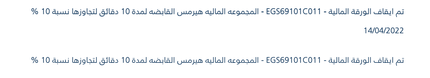 EFG Hermes’ shares closed down nearly 20% at EGP 15.46 after a trading day that saw circuit breakers triggered twice in one session when the corporation’s shares slid 10%, according to an EGX news bulletin.