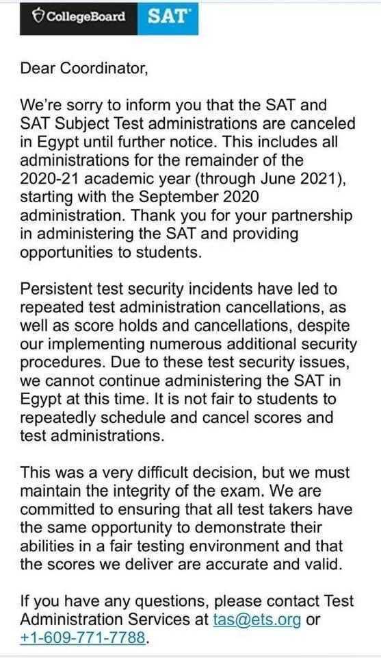 SAT exams officially resumed in June, after the tests in Egypt were scrapped in September 2020 due to “persistent test security incidents,” according tononprofit organization College Board, which develops and administers them. Now the tests are back in a new digital format that is harder to hack, leak, or manipulate, a government source told us. The Education Ministry oversaw several trial runs before approving their return.