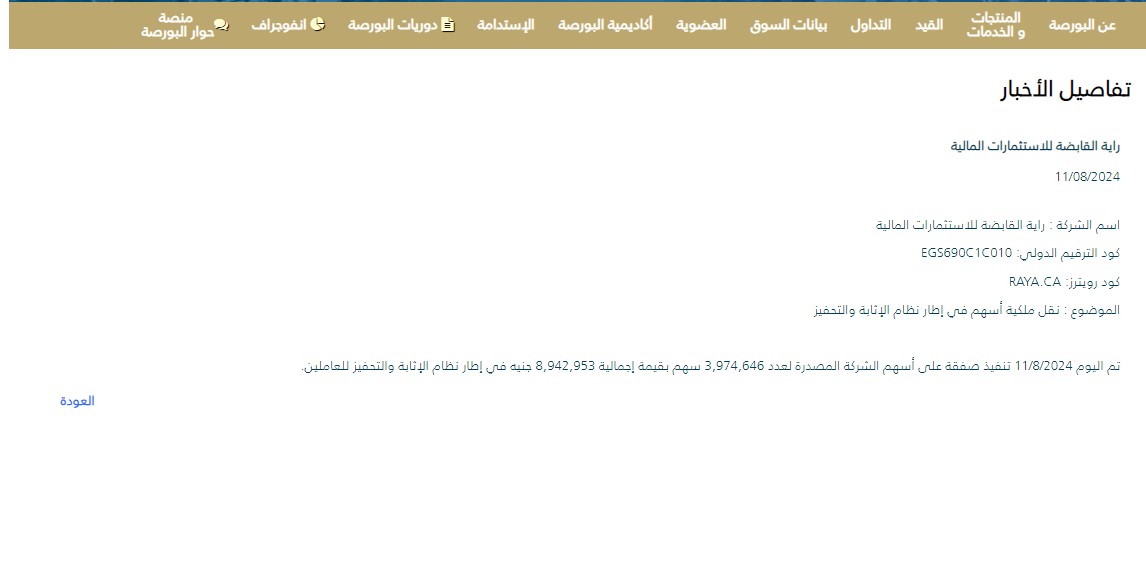 Raya Holding distributed some 3.97 mn shares — worth EGP 8.9 mn — among its employees under its employee incentive and reward program, according to an EGX bulletin.