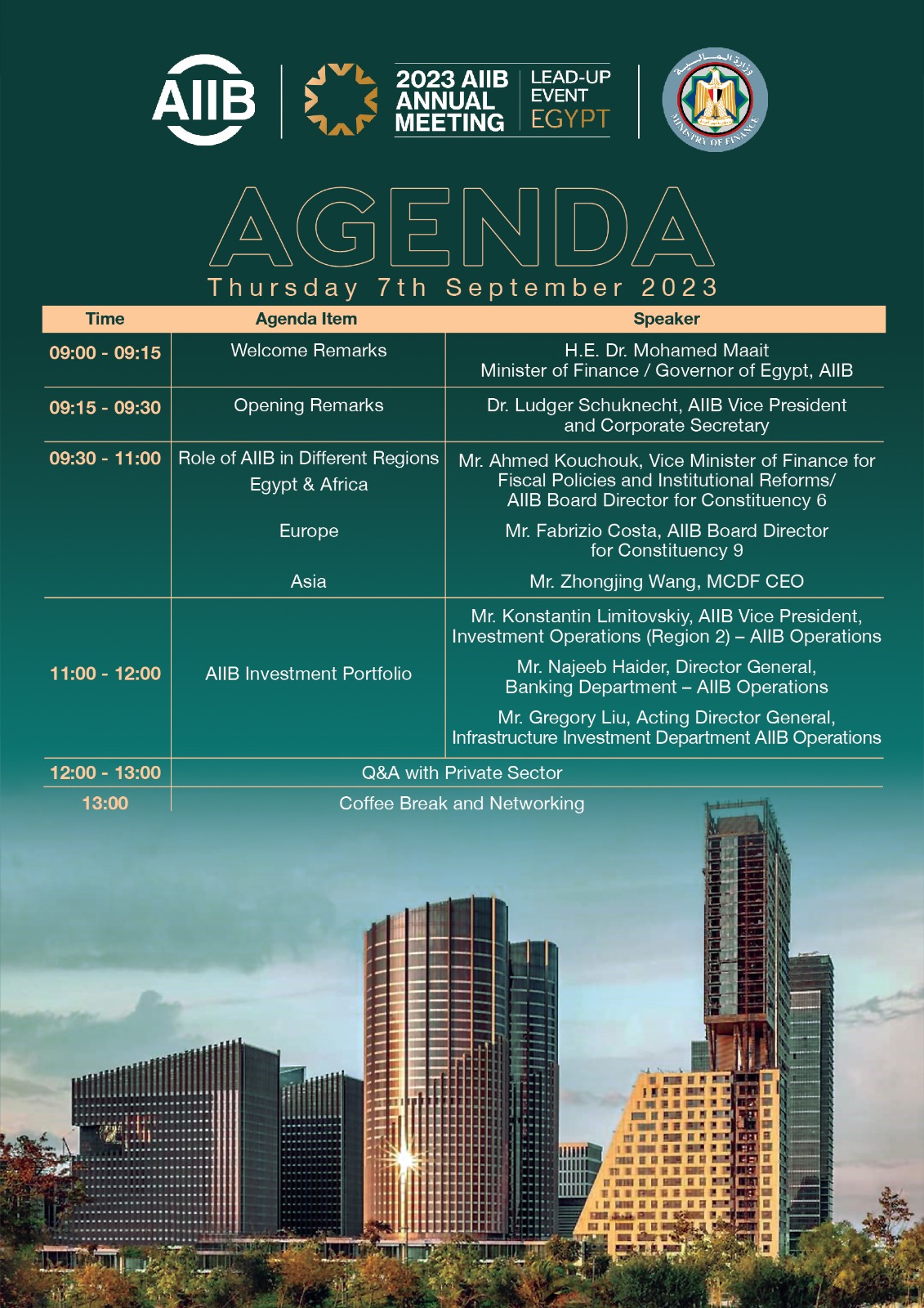 #1- FinMin, AIIB sit down with private sector players: In the lead up to this year’s Asian Infrastructure Investment Bank (AIIB) annual meeting in Sharm El Sheikh, Finance Minister Mohamed Maait, Deputy Finance Minister Ahmed Kouchouk, and AIIB Vice President Ludger Schuknecht will sit with private sector players to explore what kind of support the bank can offer them, according to a statement (pdf). The AIIB is holding its annual meeting in Sharm El Sheikh on 25-26 September.