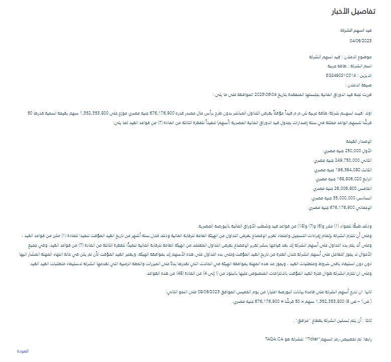 SPEAKING OF THE EGX- Taqa Arabia’s shares were listed temporarily on the EGX. The company will have six months to meet listing requirements and obtain regulatory approvals.
